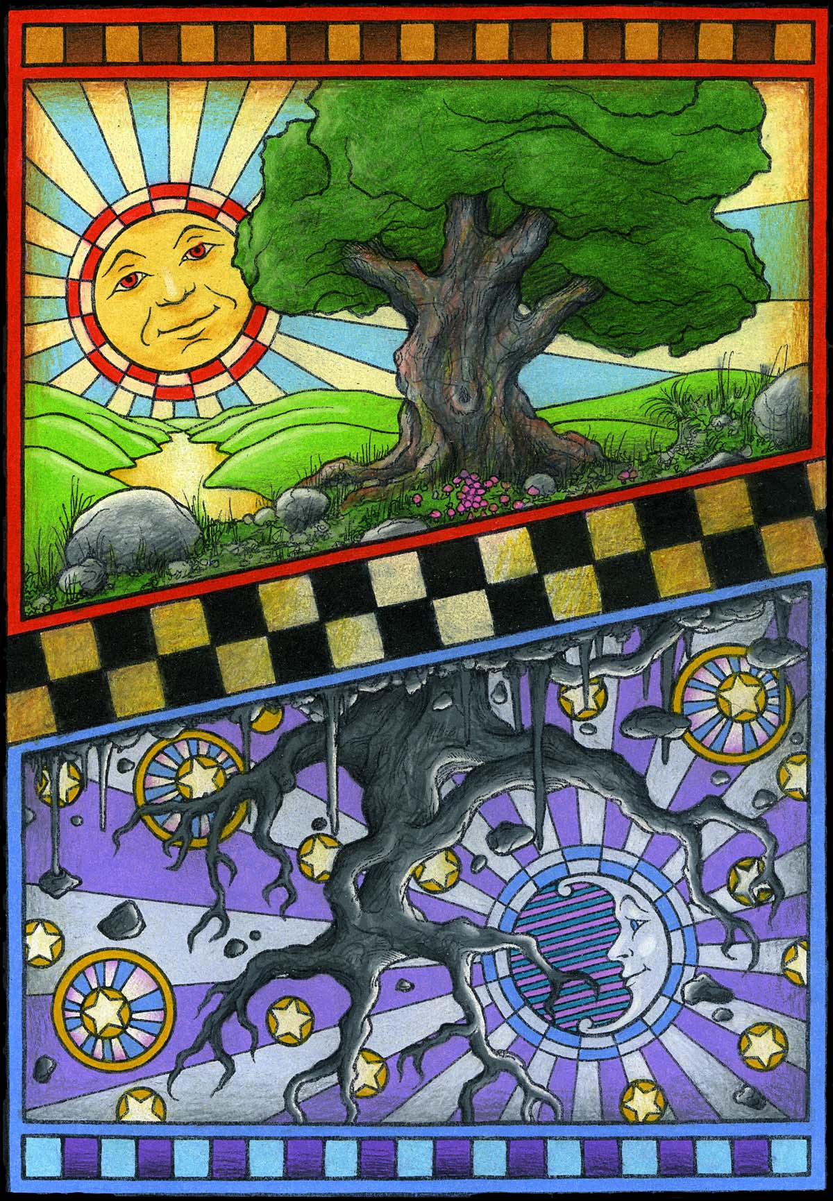 For my first coloring book, I wanted to create one that will be fun for the beginner, and still challenging for the advanced colorist. EQUINOX takes you on a grand journey through the Annual Cycle in four chapters: Spring, Summer, Autumn, and Winter. This immersion into natural cycles and folklore places EQUINOX firmly in my body of work, with strong connections to my fantasy drawings, gaming work, and even Dream-Dollars.