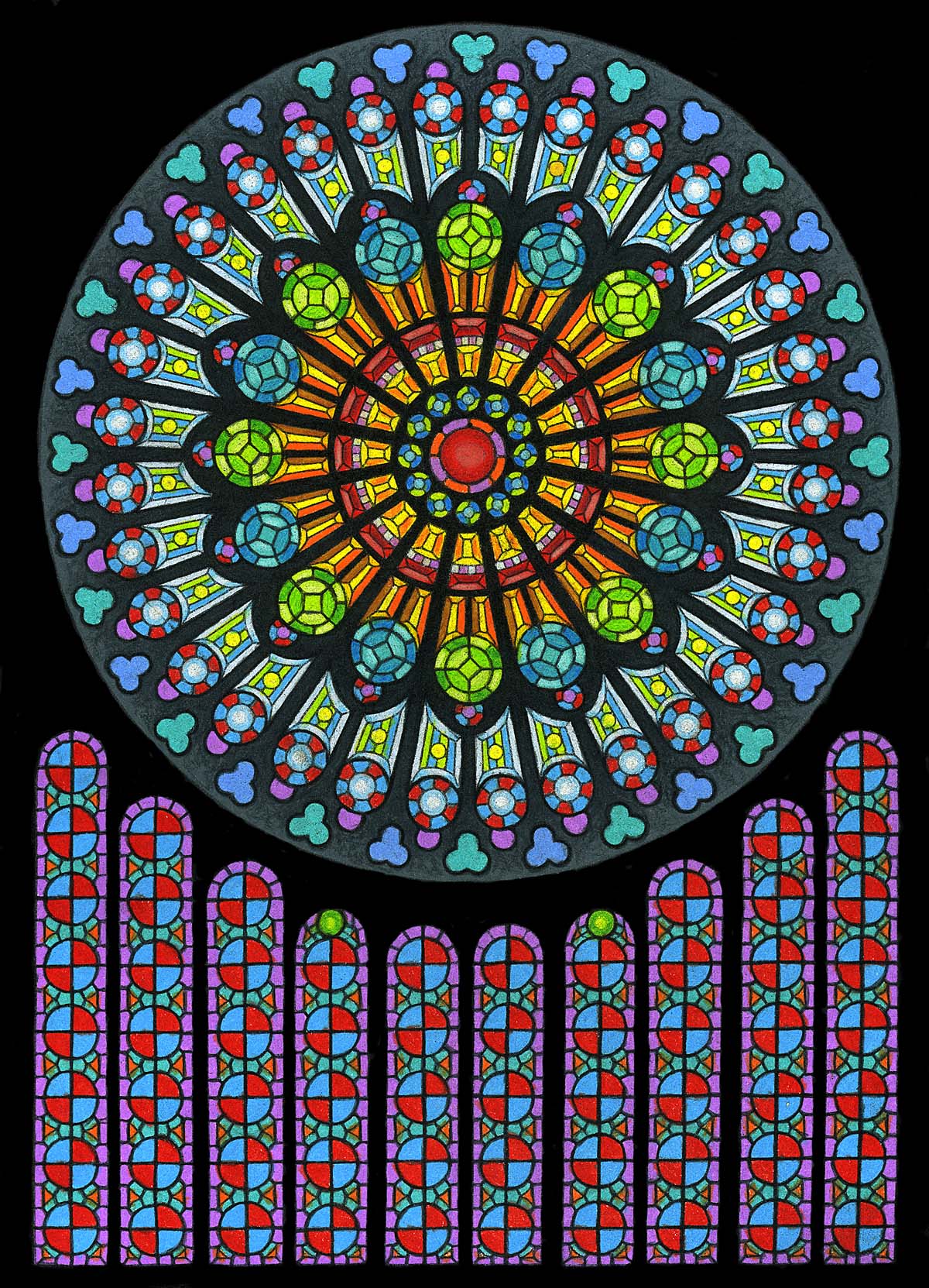 In a third category, I also did 12 Ikons. These were a selection of Christian-themed images that range from the classic Chi Ro to a Chartre Labyrinth to a stained glass Rose Window. That made a total of 36 images that can be colored.