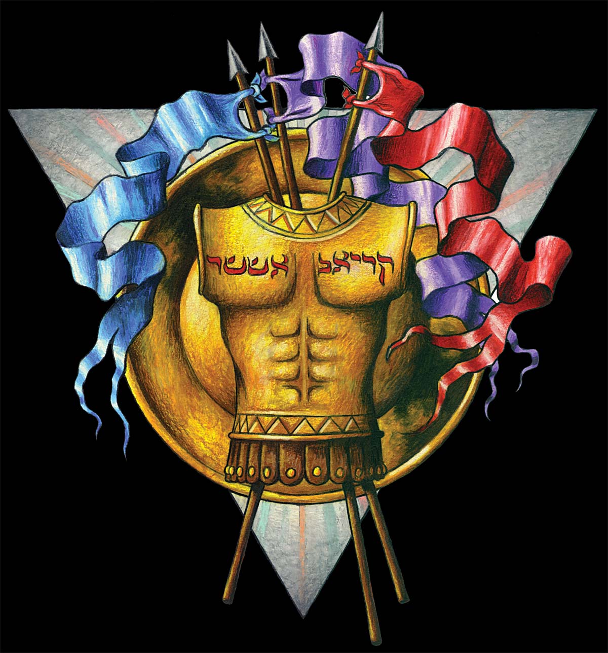 There were many artifacts I had to draw, but several were of biblical origin. This card, Asser Criel, is the Breastplate of Moses. Again, I used a real Hebrew phrase on the breastplate, but I’m not sure what it says now! I think it is just a translation of Breastplate of Moses….