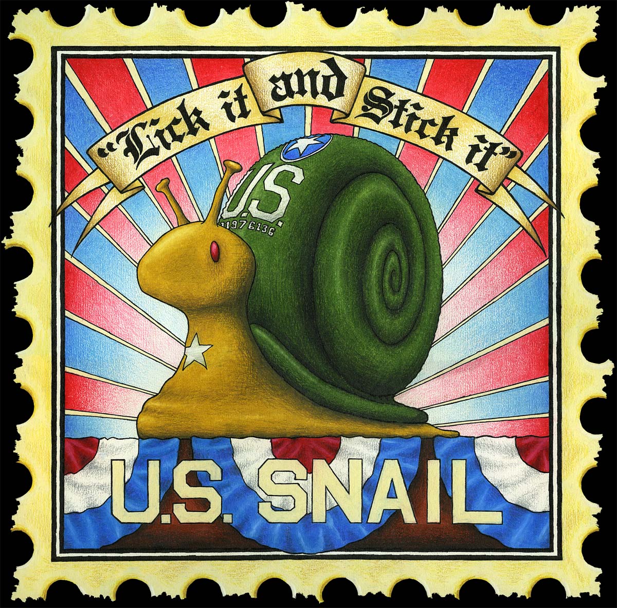 U.S. Snail goes way back. I did this with colored pencil and pen & ink, which was how I drew back in the day. But even back then, you can see my penchant for combing words and images together, employing humor, and using borders and decorative elements. This was done long before email was invented, and Snail Mail was all we had.