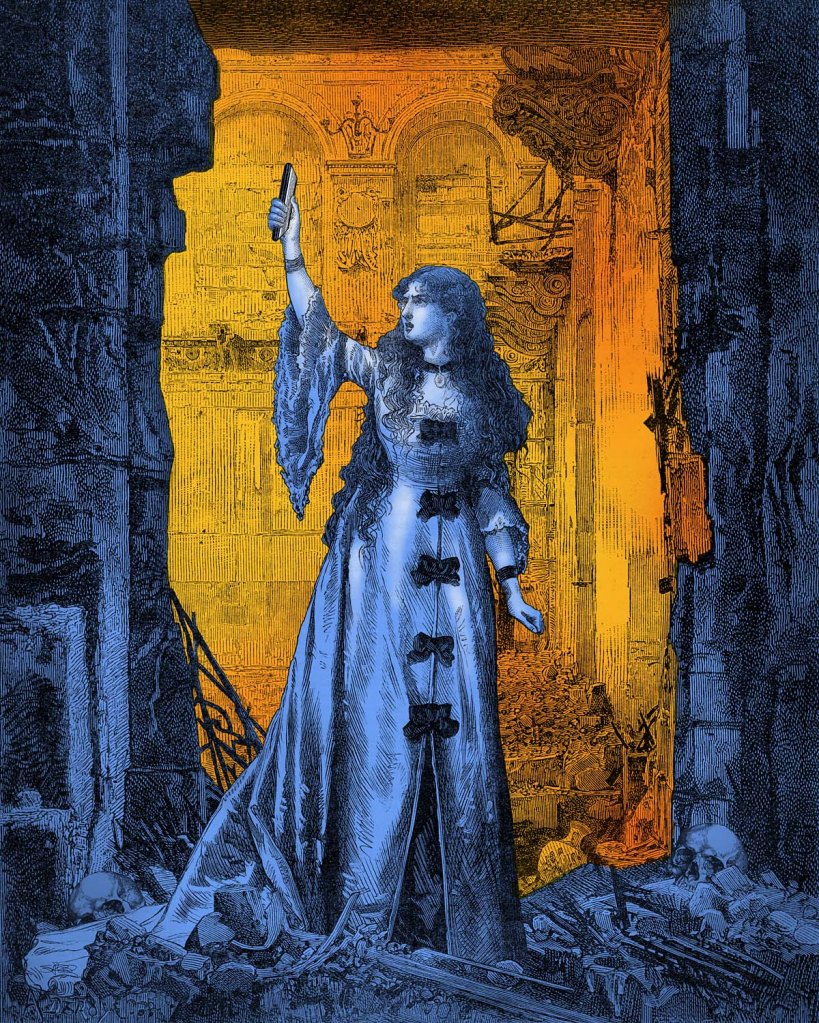 My recent print, Selfie Nation just won Second Place at the NEXT 2019 Print Biennial in Houston, TX! Some of the stuff I do every day includes making fine art digital prints for gallery exhibition. The prints tend to be surrealist or fantasy in nature, often with social commentary. Selfie Nation is my little comment on our societal obsession with connectivity and social media. We are only now beginning to experience the pernicious effects of our media saturation: an epidemic of anxiety, fear, tribalism, suicides and self-righteousness, especially in the younger generation, who have embraced the technology to a larger extent. When we feel compelled to share our entire lives online, we have surrendered our privacy and increased our vulnerability. The speed of instantaneous mass communication, fueled by manufactured outrage and self-righteousness, creates an online swarm, a mob mentality. People can be reasonable, mobs only destroy. Our society is being torn apart by swarms of ever-multiplying identity groups, all eager to shame and condemn anyone who does not think as they do.