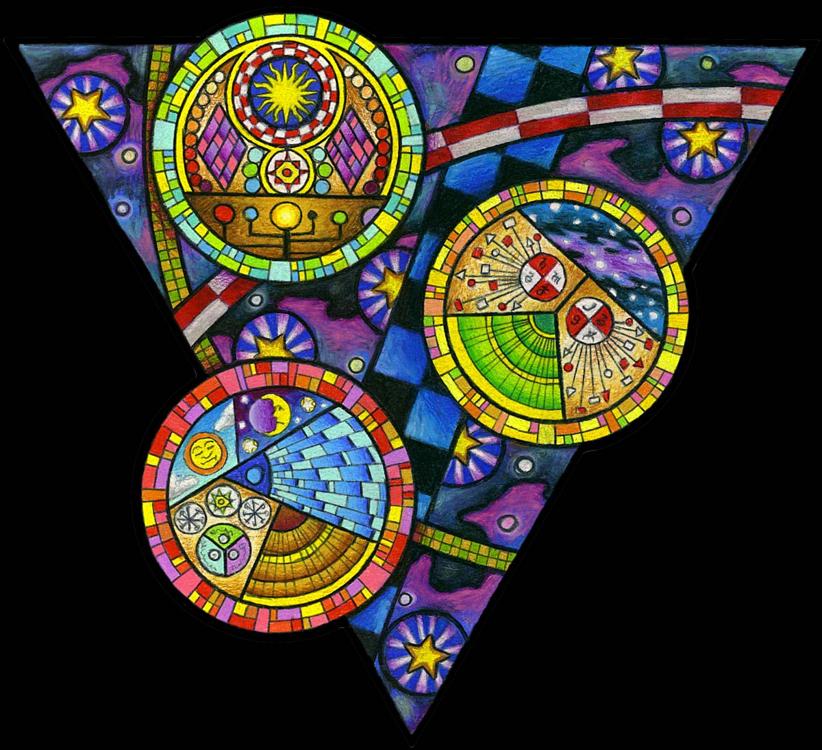 This card, called Cosmic Furnace, is a pretty straightforward alchemical concept. The forces of the cosmos create a furnace, which is a standard alchemical symbol for the crucible of transformation, the environment in which change can happen. The snake biting its tail is a common symbol for cyclical change. The world itself is our Cosmic Furnace, transmuting our souls into a finer substance. You see, alchemy was not the pursuit of turning lead into gold. That is mere base matter. The REAL object of alchemy is the transformation of the soul.