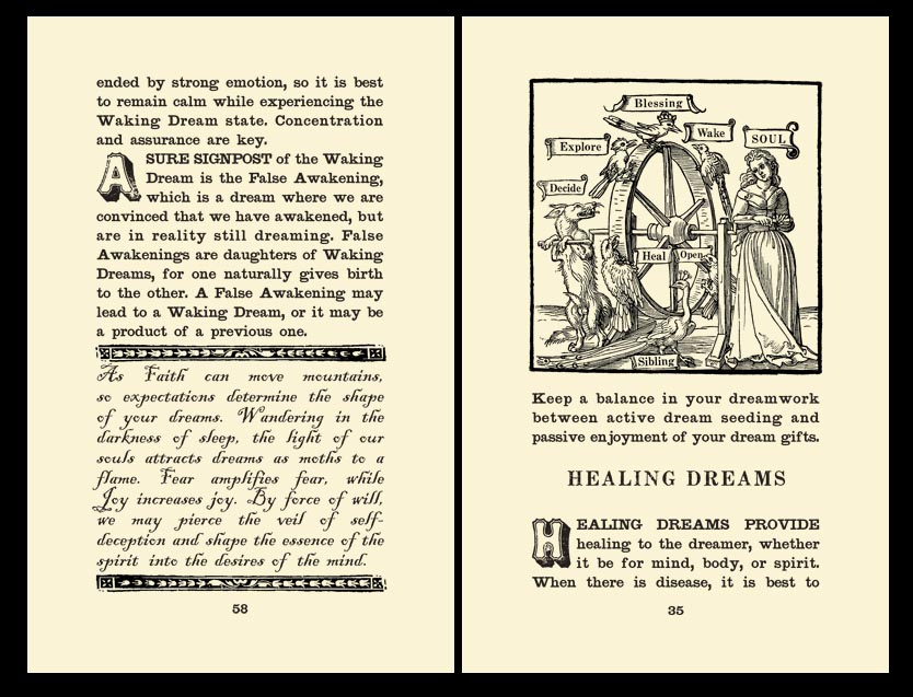The word Oneirognosis means “Dream knowledge”, from the Greek oneiros (dream) and gnosis (knowledge). It is pronounced O-ny-ro-NO-sis. I really had fun designing this book – and it was very expensive to print, hardbound on specially-ordered paper! But it is a real gem. It is rather small, but very dense. It is a book you will want to read several times to really unpack all the concepts and ideas stuffed inside.