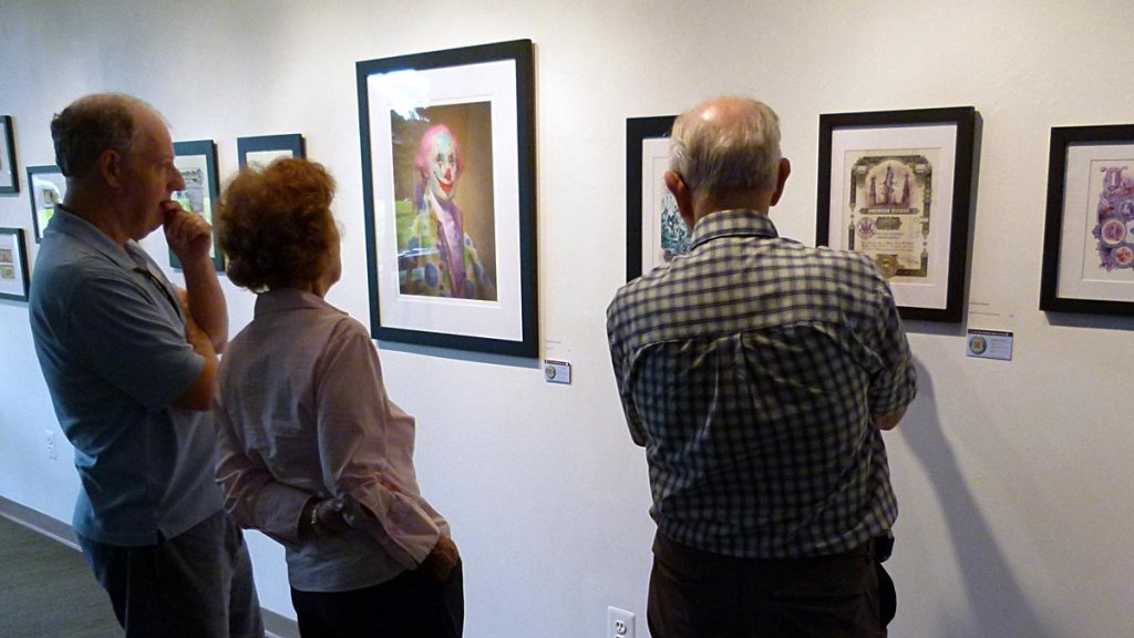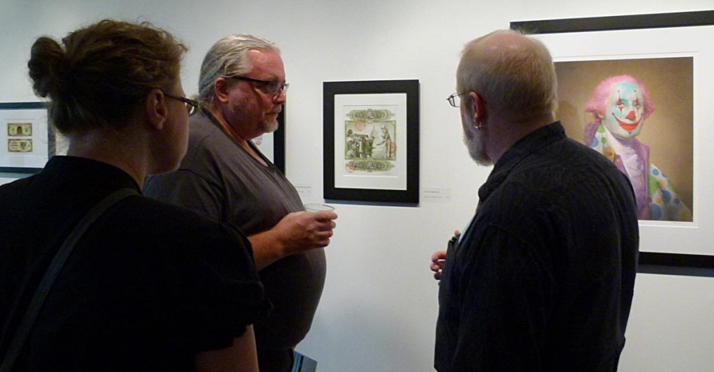 The opening reception for my current solo show, Capital Offenses, was on Friday, August 16 at Monmouth Museum in Lincroft, NJ. The reception was originally scheduled to happen on August 9, but I was going to be at my niece’s wedding in Massachusetts that weekend, and I was not going to miss that! So we changed the date to the 16th. It went very well and had a nice-sized crowd in attendance. I sold several copies of my two moneyart books and signed them. It was a fun evening, with good food, wine and interesting conversations with many people. A huge thanks to the museum staff and all who came out for both the opening and the talk!