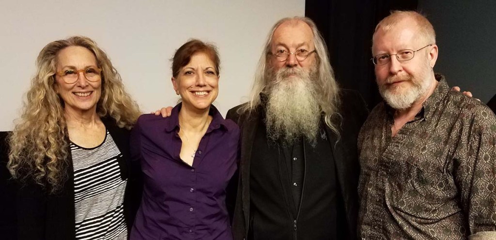 After his four-hour presentation at NYU yesterday, we went out to dinner and had a wonderful time talking about art, life, pranks, and the universe. At dinner, we were joined by Antonia and Nick Palazzo, who are making a film about film preservation and collecting. It was a great day!