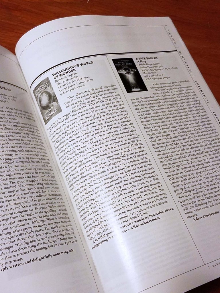 Then I got an email recently, informing me that Willoughby’s was selected to be included in their monthly print magazine, Kirkus Review! It is quite an honor! Less than 10% of all reviewed books get included in the magazine. I am super happy and grateful that Kirkus chose my book for this feature. I am really pushing Willoughby’s to get into indie bookstores, and this will really help. Thanks Kirkus!