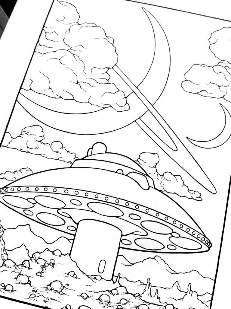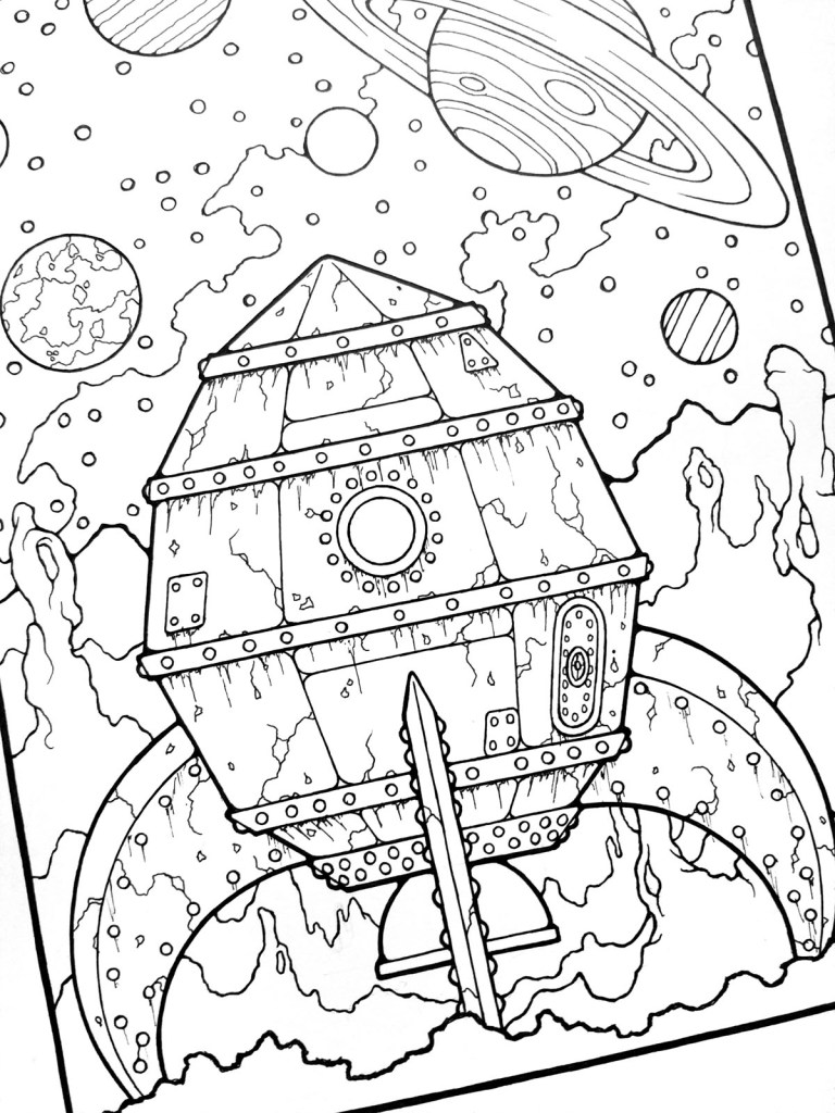 Besides the fun aspect, I can’t avoid the fact that my first coloring book EQUINOX is still my best selling book! I have published seven books now, and coloring books still outsell the others. So, it is a good business decision to make more. My specialty seems to be whimsy, as you can see in EQUINOX and Willoughby’s World of Wonder. So I am embarking on a science fiction coloring book, but adding a touch of whimsy. Many of the rockets and robots will look like painted, metal tin-toys, an aesthetic I personally love.