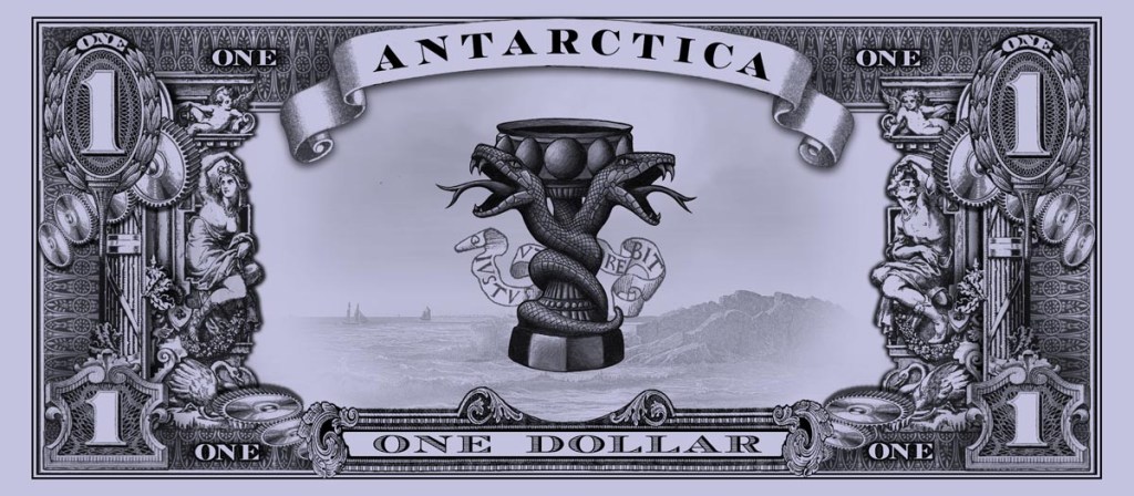 The mighty Quicksilver graces the front of this note. The lead ship of the Engineering Expedition of 1855, it carried the church’s best scientific minds to Antarctica on the valiant mission to hew the colony out of the icy wilderness. The Storm is on reverse: the Primal Soup. Within the Ultimate Void, everything is formless and without meaning. The task of Creation is set before you. The All-Seeing Eye envisions all possibilities, sees all potentialities.
